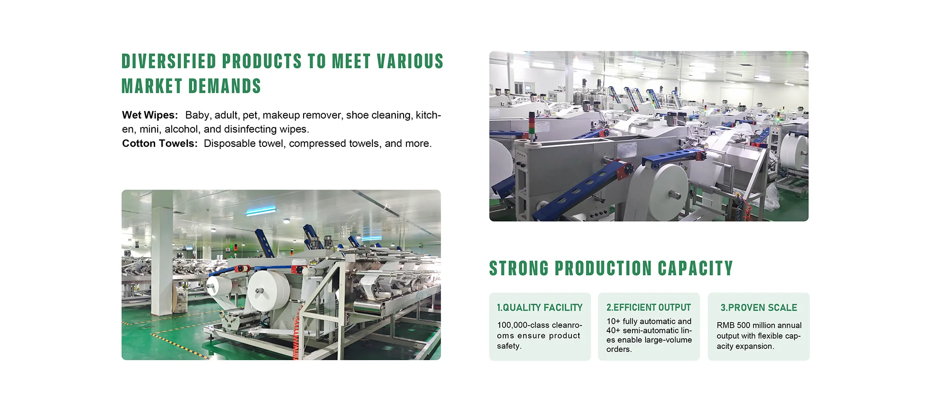 Produk utama: Tisu bayi, tisu antibakteri, tisu alkohol, handuk katun, Tisu Biodegradable